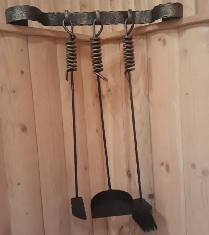 Böyle bir set, dövme yöntemi kullanılarak dayanıklı çelikten yapılmıştır. Şöminenin bakımı için en gerekli üç cihazı içerir (fırça, kürek, poker). Sunucu dikey olarak yerleştirilir, nesneler özel kancalara asılır. Isıya dayanıklı seramikler temelinde yapılan ve kaymaz bir kaplama ile donatılmış kulplar özel ilgiyi hak ediyor. Hareket halindeyken zeminin zarar görmemesi için sunucunun ayaklarına lastik tamponlar (ayrıca verilir) takılabilir. Hareketin kendisi soru sormuyor çünkü. tüm yapı oldukça hafif ve 3 kilogramı geçmiyor. Perakende zincirleri için önerilen maliyet 3400 ruble.