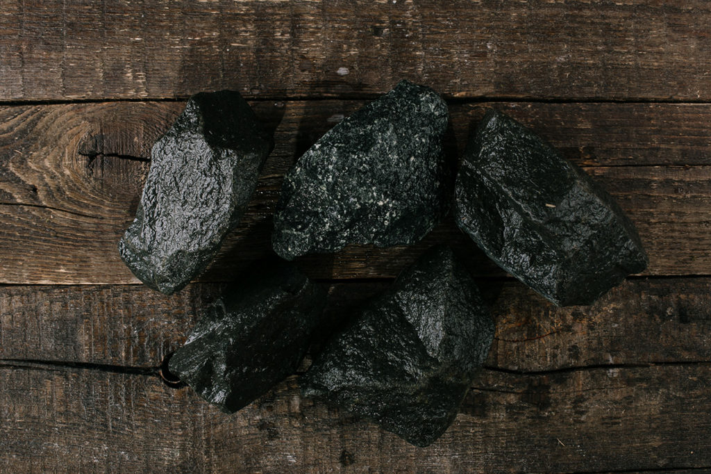Bu mineral siyahtır. Bu kaya volkanik kökenlidir. İyi bir ısı iletkenliğine sahiptir, hızla sıcaklık kazanır ve yavaş yavaş pes eder. Çok sayıda ısıtma ve soğutma döngüsüne dayanabilir. Ana vurgu yüksek mukavemettir, malzemenin değiştirilmesi gerekmez. Banyonun tüm ömrü için yeterlidir.