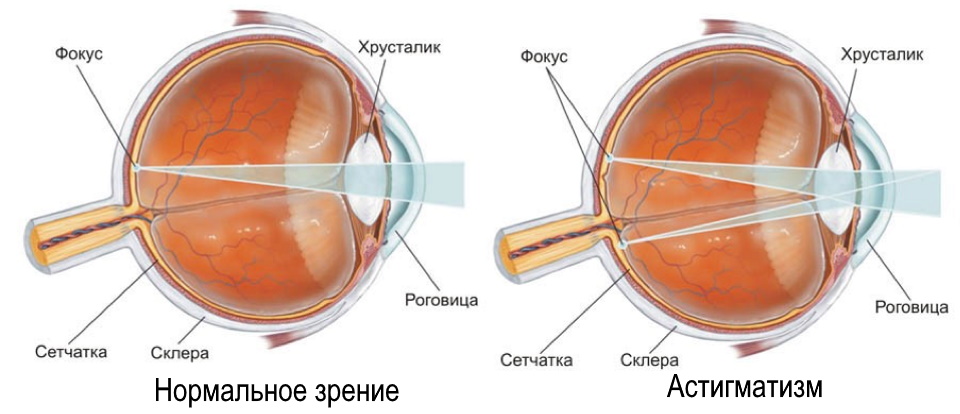 Kural olarak, gözün merceği ve korneası, her yöne aynı eğrilere sahip düzenli şekillere sahiptir. Bu, fundusta bulunan retinaya ışığın doğru şekilde odaklanmasını sağlar.