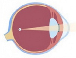 2. Hipermetrop basit - bir meridyen boyunca bir ışık ışını - retinada, ikincisi boyunca - arkasında.