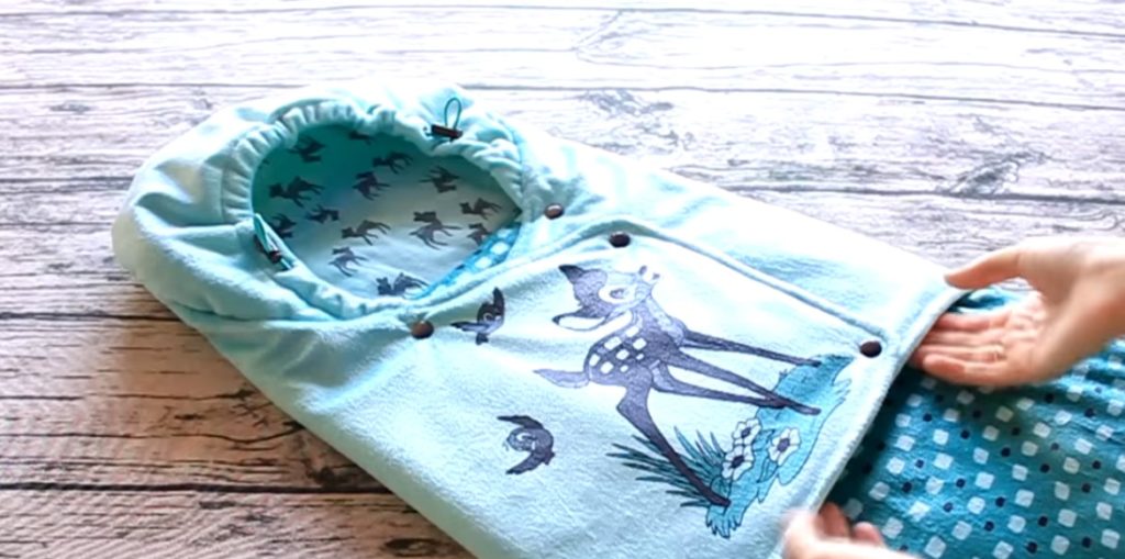 Büzme ipini çekmek, bir başlık oluşturmanıza olanak sağlar. Ve düğmeyi açmak küçük bir şeyden bir battaniye yapar. Hassas modda yıkanabilir. Ancak santrifüjde ütüleme, sıkma ve kurutma yapılmaması tavsiye edilir. Boyutlar - 79x39 cm.
