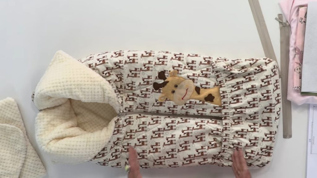 Bu, pamuktan yapılmış daha sıcak bir modeldir. Ağırlık 330 g'dır ve 900 ruble fiyatına mal satın alabilirsiniz. Şey çok yönlüdür: bir zarfa ve rahat bir yatak takımına, portbebeye, alt değiştirme minderine ve gelecekte oyunlar için dönüşür.