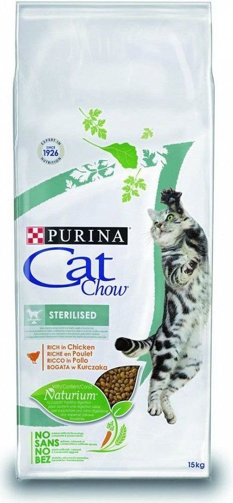 Purina Cat Chow, kısırlaştırılmış kediler için mamadır. Kompozisyon, sağlıklı kümes hayvanlarının seçildiği yüksek kaliteli protein, maya, bitki bileşenleri ve prebiyotiklerle zenginleştirilmiştir. Evcil hayvanın kasları ve ağırlığı üzerinde normalleştirici bir etkiye sahiptir, aşırı yağ birikimini önler. Görmeyi, dişleri iyileştirir ve bağışıklığı iyileştirir. Yüne yumuşaklık ve parlaklık verir.500 ruble'den daha az bir buçuk kilogramlık bir paket satın alınabilir.