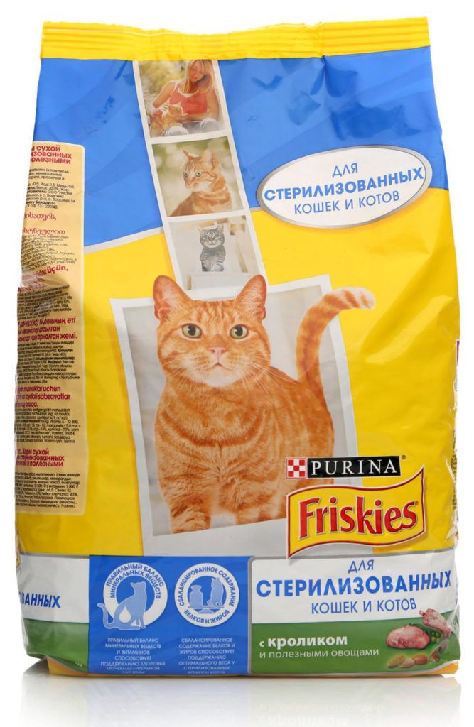 Friskies, kısırlaştırılmış kediler için katı bir besindir. Genç yaşta tam bir diyet derlemek için uygundur. Özel ürünler sadece tavşan ve sebze tadında satılmaktadır. Dengeli protein ve yağ içeriği nedeniyle, evcil hayvanın ağırlığı normal bir değerde tutulur. A, D3 ve E vitaminleri, demir, iyot, bakır, manganez, çinko ve selenyum ile zenginleştirilmiştir. 2025'de bir buçuk kilogram 350 ruble için satın alınabilir.