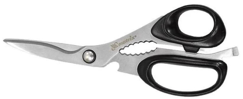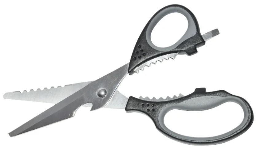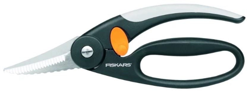 Küçük veya büyük balıklarla çalışmak, yüzgeçleri, pulları, kuyruğu çıkarmak için tasarlanmış kesme makası. Kesici kısımdaki tırtıklı alan, kemiklerin doğru ve hızlı kesilmesine katkıda bulunur. Kulplar dayanıklı yüksek kaliteli plastikten yapılmıştır, sağ elini kullananlar ve sol elini kullananlar için rahattır, ele rahatça uzanır, çalışma sırasında kaymaz. Başparmak için özel bir halka var. Ayrıca model, tek parmak hareketi ile kolayca etkinleştirilebilen bir kilitleme mekanizması ile donatılmıştır.FISKARS “Fonksiyonel Form” mutfak aleti, bulaşık makinesinde 137 dereceyi geçmeyen sıcaklıkta yıkanabilir. Bıçakların uzunluğu 7 cm, ortalama maliyet 1.984 ruble.