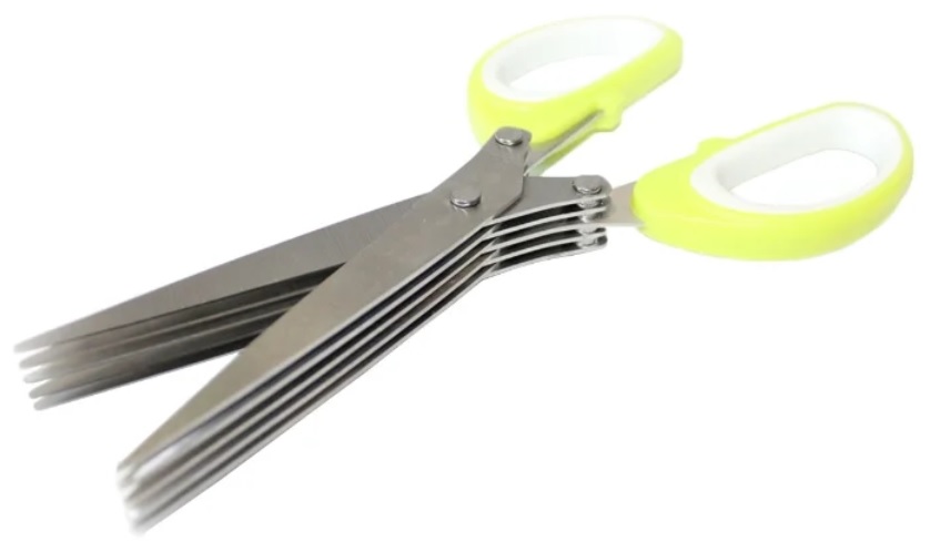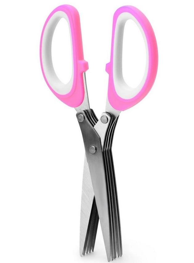 Beş çift keskin bıçaklı klasik mutfak makası modeli, yeşillikleri (dereotu, maydanoz, yeşil soğan, marul) hızlı ve doğru bir şekilde keser. Ev veya profesyonel kullanım için uygundur. Cihaz bulaşık makinesinde yıkanabilir. Mutfak yardımcısı yeşillikleri kesmenin yanı sıra kumaş veya kağıt gibi malzemeleri kesmek için de uygundur. Kit, bıçaklar arasındaki boşluğu temizlemek için bir fırça içerir. Ortalama maliyet - 499 ruble.