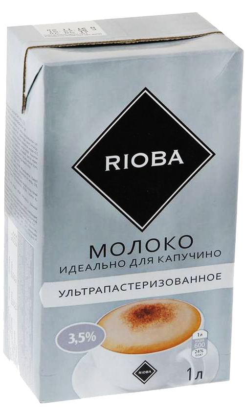 Rioba markası altındaki süt sterilize edilir, normalize edilmiş inek sütünden hazırlanır ve bağımsız bir ürün olarak tüketim ve kapuçino da dahil olmak üzere çeşitli yemeklerin hazırlanmasında kullanım için mükemmel bir seçenektir. Kaynatma gerektirmez, iyi çırpılır ve tatlımsı bir tada sahiptir, çırpıldığında uzun süre çökmeyen mükemmel yoğun bir köpük oluşturur. Ürünler pastörizasyona tabi tutulduğu ve uygun tetra paket ambalajlara yerleştirildiği için raf ömrü oldukça uzundur. Sütün yağ içeriği %3,5'tir ve köpüğün tadını ve dış özelliklerini olumlu yönde etkileyen 2,8 g protein içerir.