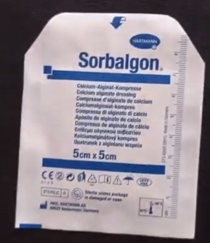 Alman üretici Hartmann'dan Sorbalgon, yanıkların, apselerin, eksüda yatak yaralarının, cerrahideki derin yaraların, diyabetik ve trofik ülserlerin, çıbanların ve onkocerrahinin tedavisinde kendini kanıtlamıştır. Ürünün yüksek jel oluşturucu ve emici özellikleri, taze travmatik ve kanamalı yaralanmaların tedavisinde önemlidir. 1 adet ortalama maliyet. 290 ruble (verilme şekli: paket başına 10 adet).