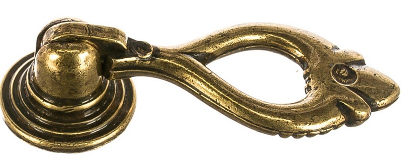 Döngü tarzında sağlam metalden yapılmış güzel bir örnek. Tabanı, retro tarzına uygun olarak çeşitli dekoratif "hasarlar" ile özel olarak tasarlanmıştır. En iyi geleneksel iç mekanlarda ve büyük çekmeceler için kullanılır, ancak sonunda iki armatürün bulunmasını gerektirir. Kurulumu kolaydır ve sadece bir vida gerektirir. Menşe ülke Çin'dir. Önerilen mağaza fiyatı 95 ruble.