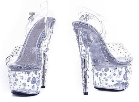 Profesyonel sömürü modeli (erotik direk dansı). Topuktaki toka, sabitleme derecesini ayarlamanıza izin verir. Açık tipte topuk ve parmak ucu, topuğun içine metal bir çubuk sokulur. Platform yüksek, topuk sivriltilmiş silindirik, saplamadan biraz daha geniş. Taban ve iç taban dışındaki her şey, yapay / doğal ışıkta çok iyi parıldayan farklı boyutlarda elmaslarla süslenmiştir. Dansçıların kostümleriyle birlikte - büyüleyici bir gösteri.
