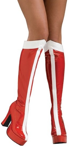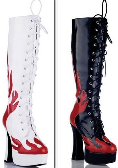 Dıştan pürüzsüz bir kıvrıma sahip, dikdörtgen şekilli sabit bir topuğu olan, samimi zevkler, temalı etkinlikler için uygun bir ürün. Küçük bir platformu var. Burun yuvarlaktır. Taban, topuklar ve topuğun içi siyah, diğer her şey kırmızı. Üçgen üst kısımdan (ön) tabana ve botun üst konturu boyunca beyaz bir şerit vardır.