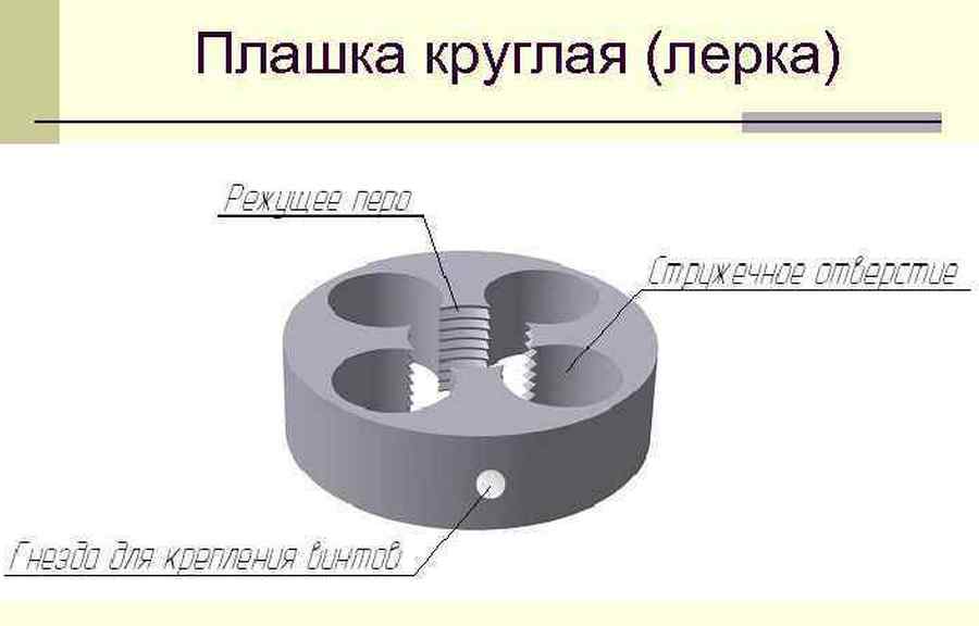 Kesmek için bir zar yeterli olmayacaktır. Lehrka'yı tutmak ve sıkıştırmak için bir yardımcı cihaz kullanmak da gereklidir - buna kalıp tutucu denir. Böyle bir cihaz, küçükten büyüğe hemen birkaç boyut için tasarlanmıştır. Plaka içeriye monte edilir ve bir vida ile tutulur.
