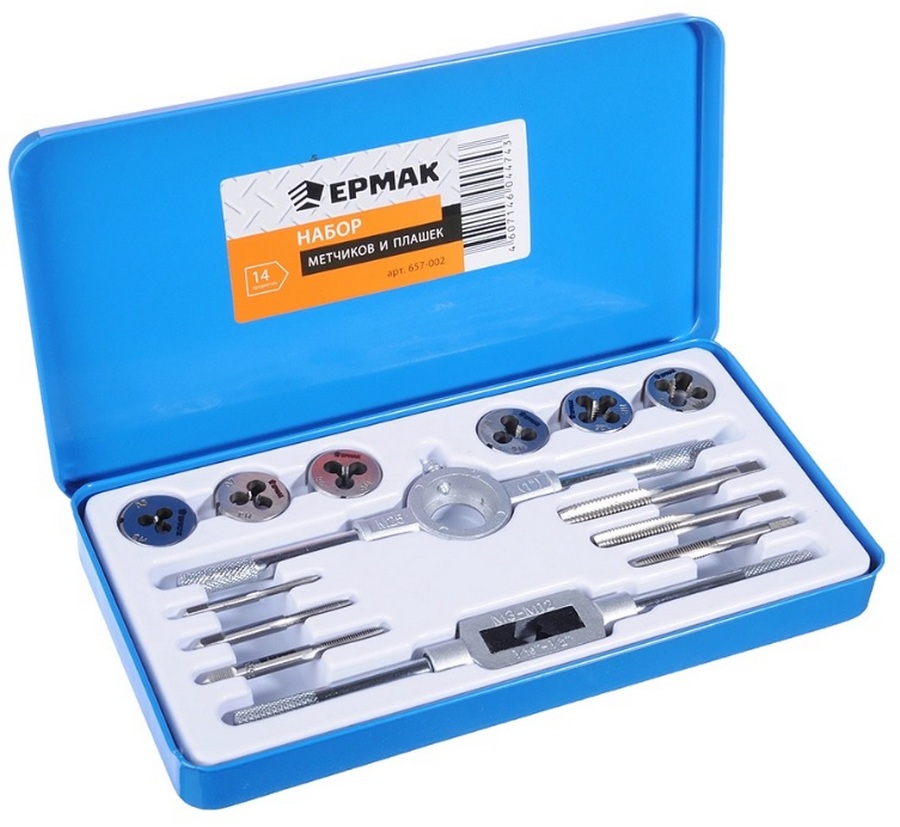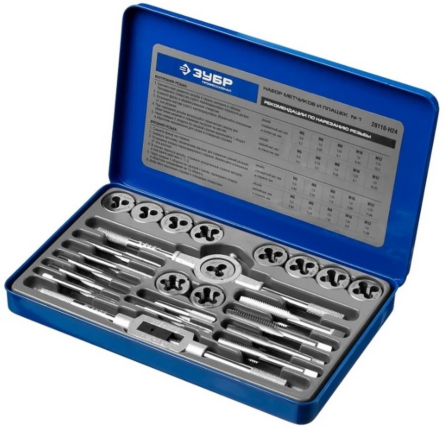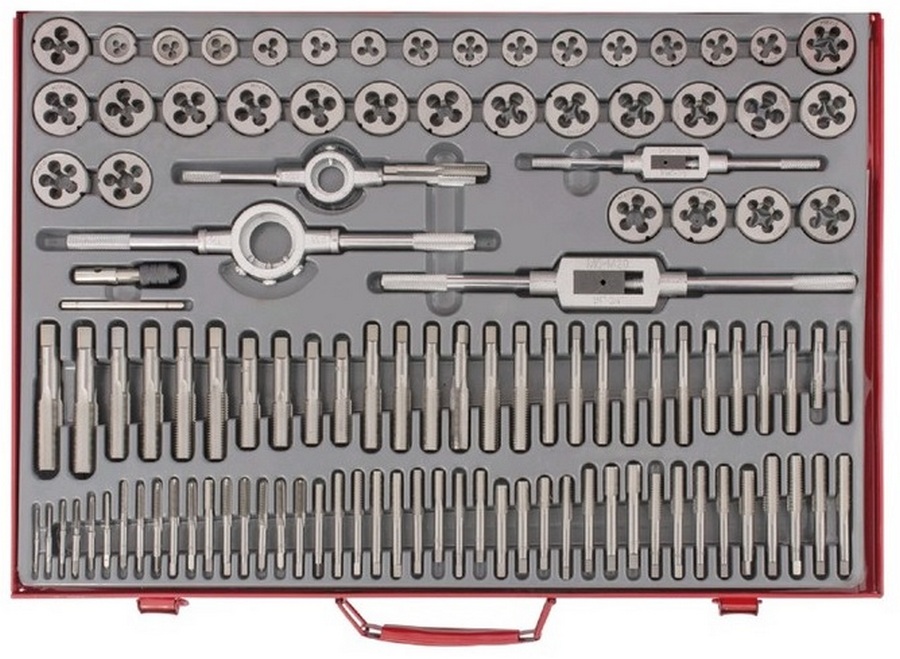 110 parçalık en profesyonel set. Hem evsel hem de endüstriyel anlamda kesinlikle her işi yapabilir. Alüminyum, dökme demir, çelik ve bakır gibi herhangi bir malzemeden yapılmış parçaların işlenmesi için tamamen uygundur. Tüm aletler, yenilikçi ağır hizmet tipi kesme çeliğinden 9XC'den yapılmıştır.