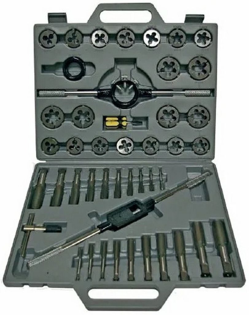 Birçok yönden evrensel bir kit, çünkü hem çilingir hem de otomotiv parçaları için kullanılabilir. Standart tüfek için kalıpların ve muslukların çoğu içinde bulunur. Mükemmel bileme kalitesi, çalışma sırasında aşırı çaba sarf etmemenizi sağlar. Kasa çelikten yapılmış ve güçlü bir tuş kilidine sahip.