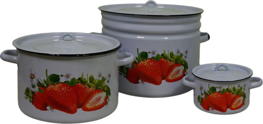 Yemekler bir Rus üretici tarafından üretiliyor. Özel çelikten yapılmış ve ince bir emaye tabakası ile kaplanmıştır. Farklı boylarda 3 tavadan oluşmaktadır. Retro tarzı kullanmayı tercih eden hostesler için uygun ürünler. Tencere zararlı bileşenler yaymaz, bu nedenle sadece yemek pişirmek için değil, aynı zamanda yiyecek depolamak için de kullanılabilirler.