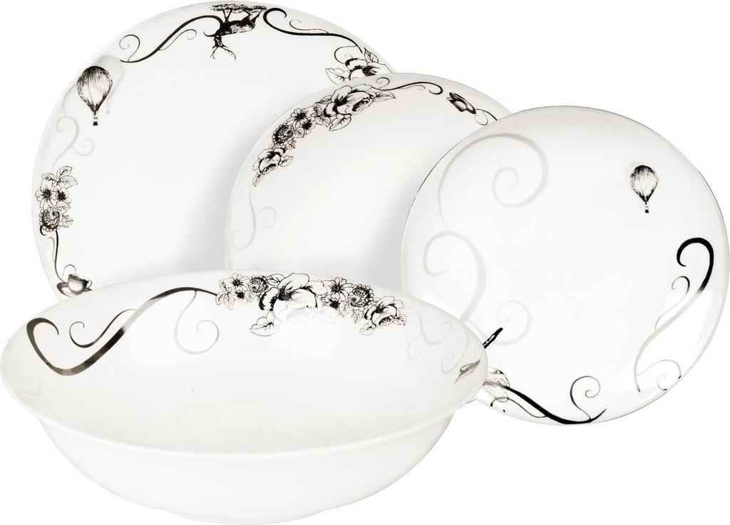 Bu bardak servisi 4 kişilik sofra düzeni için ideal bir çözüm olacaktır. Set 12 parça içerir ve bulaşık makinesinde aşındırıcı deterjan kullanılmadan yıkanabilir. Plakaların yüzeyi pürüzsüz bir dokuya sahiptir. Kullanımdan sonra hoş olmayan bir koku kalmaz. Çizim silinmez ve parlaklığını kaybetmez.