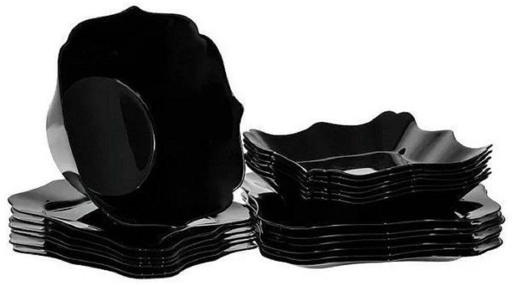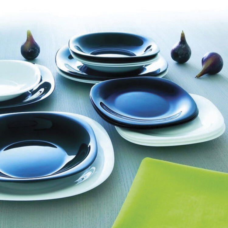 Plakalar koyu camdan yapılmıştır. Plakaların sıra dışı şekli yemek yemeyi kolaylaştırır. 24 cm derinliğindeki salata kasesi, servisi tamamlar.