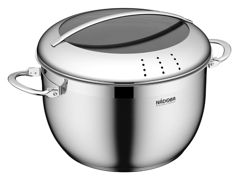 Set, 2,1 l, 3,2 l, 6 l kapasiteli 3 tava ve 1,5 litre hacimli kulplu bir kepçe içerir. Kapsüllü alt kısım servis ömrünü uzatır. Duvarlar yüksek kaliteli paslanmaz çelikten yapılmıştır. Kulplar, pişirme işlemini güvenli hale getiren özel ısı yalıtımlı parçalarla kaplanmıştır.