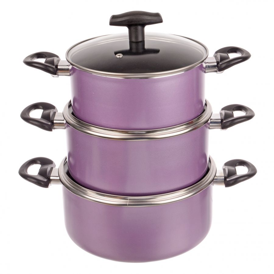 Kapaklı tencereler yüksek kaliteli paslanmaz çelikten imal edilmiştir. Set 3 tencere içerir 1.4 l, 2.6 l, 5.5 l. Ürünler her tür soba için uygundur, çabuk ısınır ve ısıyı uzun süre korur.Taban çok katmanlıdır, tavaların iç duvarı sıvıyı dağıtmak için özel bir ölçeğe sahiptir. Kapaklar temperli camdan yapılmıştır. Kulplar katlanabilir, bu da fırında pişirme için tavaları kullanmanıza izin verir.