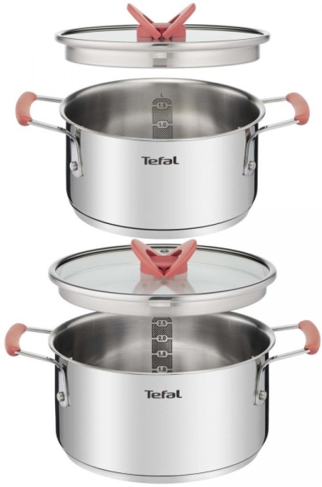 Paslanmaz çelikten yapılmış bir dizi tencere. Set 2 tava 2.1 ve 3 litre içerir. Her ocakta kullanılabilir. Ürünlerin dış kısımlarında leke veya yağlı iz yoktur.Hem elle hem de bulaşık makinesinde temizlenmesi kolaydır. Kulplardaki özel ekler, pişirme işlemini güvenli hale getirir.