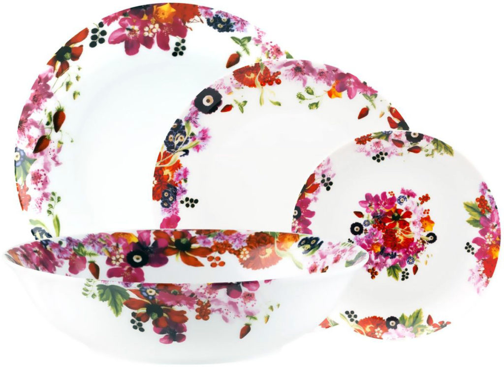 Yüksek kaliteli camdan yapılmıştır. Servis 6 kişiliktir. Züccaciyenin bir özelliği, plakaların olağandışı şeklidir. Plakalar hafiftir, zararlı bileşikler içermez. Normal bir yemeği bile şenlikli hale getirebilirler.
