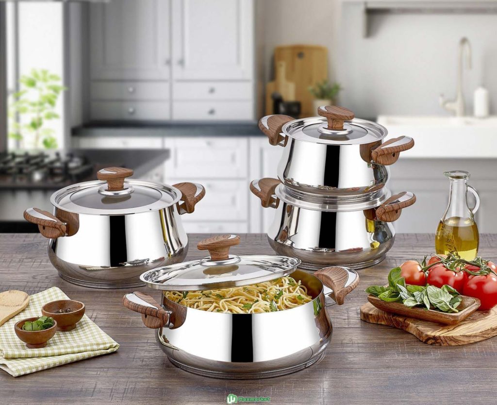 En yaygın kullanılan paslanmaz çeliktir. Bu tür mutfak eşyaları korozyona uğramaz ve gerekli şekli korur. Modern ev hanımları için önemli olan ürünler insan sağlığı için güvenli ve çekici görünüyor. Paslanmaz çelik, ısıyı ürüne eşit olarak dağıtarak pişirme işlemini hızlandırır.