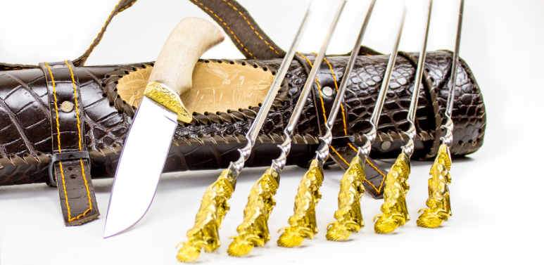 Üretici: Kızlyar ustaları. Bu üretici piyasada güvenilir biri olarak kendini kanıtlamıştır. Ahşap saplı ürünler nezih görünüyor. Her durum için bir hediye olarak mükemmel. Sap üzerinde bireysel bir gravür yapmak mümkündür. Ayrıca, bir barbekü ızgarası sağlanmaktadır. Maliyet 8600 ruble.