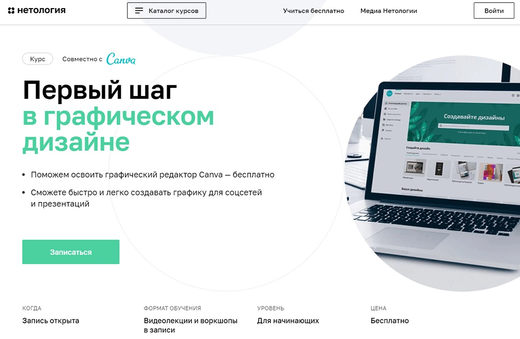 Bu kurs, Canva grafik düzenleyicisinin çalışmasına yöneliktir. Giriş programı, süresi 30 ila 60 dakika arasında olan 6 blok içerir.