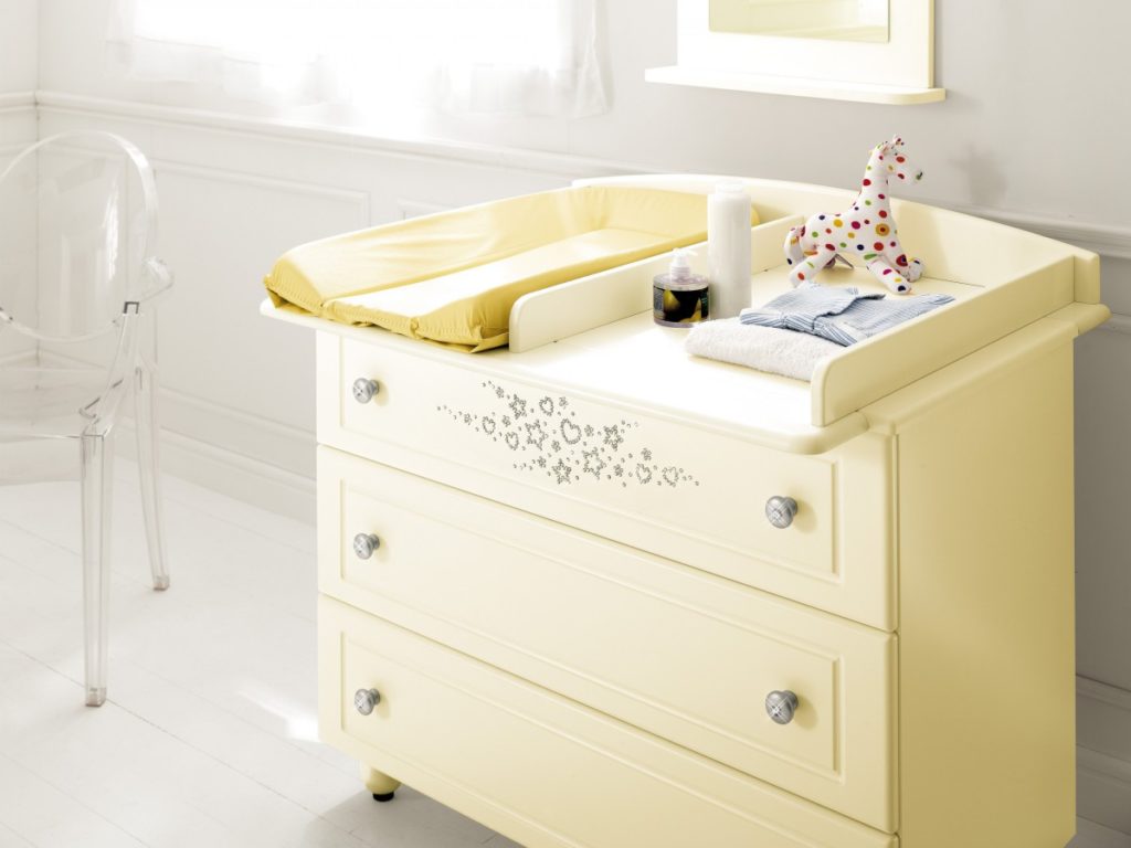 Çevrimiçi mağazalarda ve mobilya mağazalarında, ev ortamınıza mükemmel şekilde uyan örnekleri alabilirsiniz. Seçim yaparken tasarımın önemli bir öğe olduğu unutulmamalıdır: bebeğin bakımını büyük ölçüde kolaylaştırır ve bebeğin kişisel eşyalarını saklamak için uygundur.