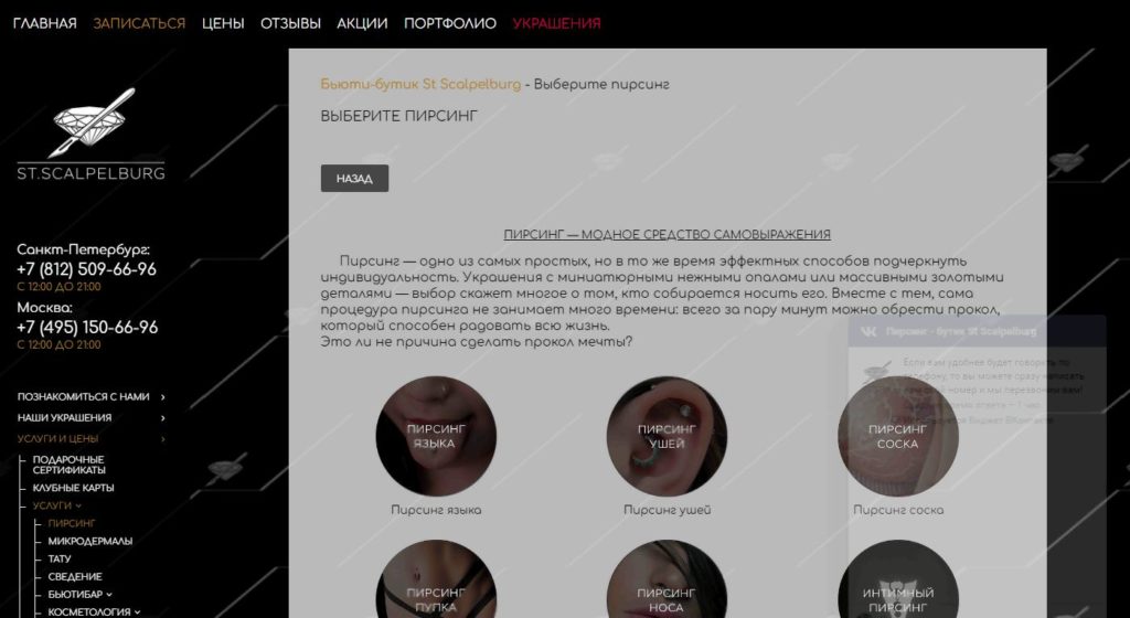 Bu salonun sitesinde, verilen hizmetleri listelemenin yanı sıra, istenmeyen piercing türleri hakkında, nasıl dikilmeyeceğini gösteren ve nedenini ayrıntılı olarak açıklayan ilginç bir bölüm var. Salonun içi, herkesin hoşlanmayacağı acımasız resmi olmayanlar için bir yaşam alanından çok bir klinikteki bir manipülasyon odası gibidir. Bununla birlikte, hizmetlerin kalitesi yüksek düzeydedir ve ustalar profesyonel ayrıntılı tavsiyelerden kaçınmazlar.