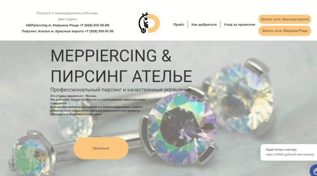 Piercingi dövme ve bir dizi başka hizmetle birleştiren diğer birçok salonun aksine, bu kuruluş dar uzmanlığıyla ünlüdür ve yalnızca piercing ile ilgilenir. Moskova'nın farklı yerlerinde bulunan iki salon, ulaşıma en uygun yeri seçmenize olanak tanır. Ustalar en az 5 yıllık deneyimle çalışırlar, hizmetleri Avrupa kalite seviyesine karşılık gelir.