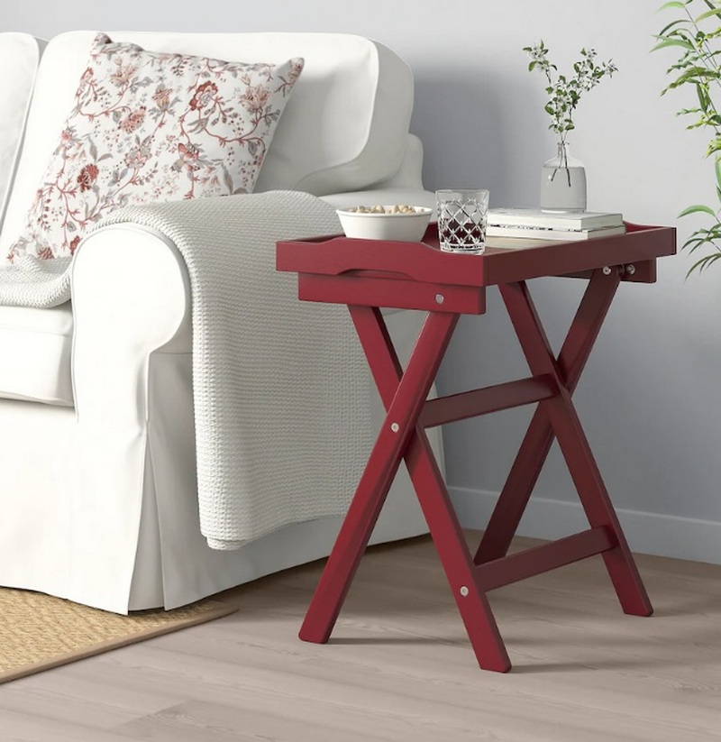 Bu masanın katlanabilir bir tabanı ve yatakta kahvaltı servisi yapmak veya bir parti sırasında içecekler için kullanışlı olan çıkarılabilir bir tepsi üstü vardır. Ön ek, komodin veya sehpa olarak da kullanılabilir. Tasarımın katlanması ve saklanması kolaydır. Çıkarılabilir tepsinin temizlenmesi ve bakımı kolaydır. Geniş kenar ve girinti, kazara dökülme riskini ortadan kaldırır.Perakende zincirleri için önerilen maliyet 5.000 ruble.
