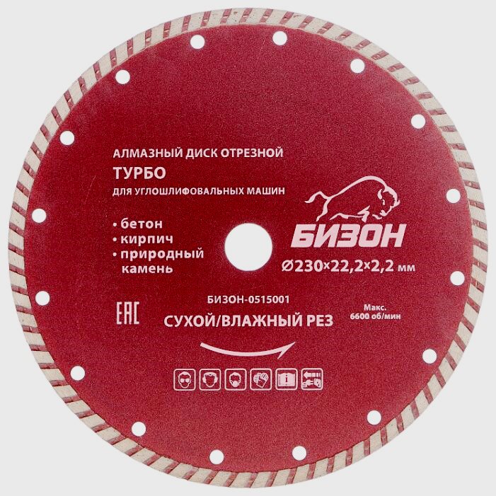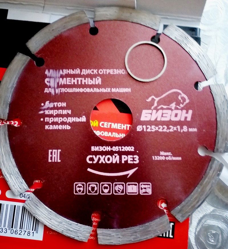 Rus markasının ürünleri, profesyonel inşaatçılar arasında hak ettiği popülerliğe sahiptir. Açılı taşlama makinelerine ve el tipi kesicilere takılır. Beton, mermer, tuğla, kaldırım taşı, granit ve kumtaşının kuru kesimi sağlanmaktadır. Segment sayısı - 16, çap - 230 mm, ağırlık - 0,66 kg.