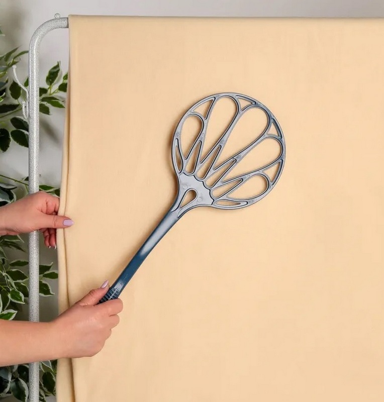 Ürün halıları, patikaları, halı veya halıları, battaniyeleri, yastıkları ve battaniyeleri toz ve kirden kolayca temizleyecektir. Model, Dünya gezegeninin konturu şeklinde yapılmış bir tasarıma sahip, dayanıklı bir gövdeye ve elastik bir platforma sahiptir. Derin havlı halılardan veya büyük kuş tüyü yastıklardan bile tozu çıkarabilir, dolaşan lifleri düzeltmeye ve temizlenmiş eşyalara temiz hava ve hacim katmaya yardımcı olur. Alet, kullanımdan sonra şeklini ve orijinal görünümünü geri yükler, dayanıklıdır. Cihaz, çevre için kesinlikle güvenli, fenol ve ftalat içermeyen dayanıklı plastikten yapılmıştır. Ayrıca, alet geri dönüştürülebilir ve böylece çevre dostu bir şekilde elden çıkarılmasına yardımcı olur. Çentikli ergonomik tutamak ele rahatça oturur ve çalışma sırasında yükü doğru şekilde dağıtır, elde kaymaz veya dönmez. Perakende zincirleri için önerilen maliyet 430 ruble.