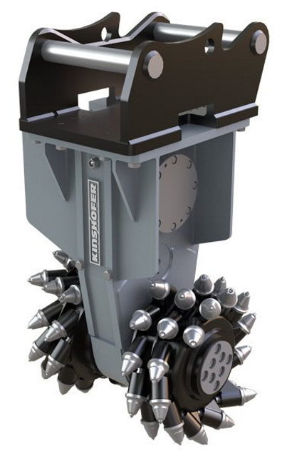 Bir ekskavatör için döner kesici - kayaları kırmak ve gevşetmek, yapıların sökülmesi ve yıkılması, hendeklerin döşenmesi, tonozların profillenmesi, eski kaplamaların çıkarılması, tarama veya diğer işler için monte edilmiş bir hidrolik alet.