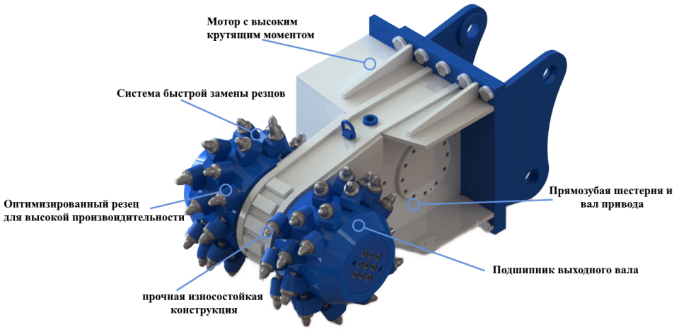 Kazı ve tarama, tünel açma veya kanal açma, beton ve taş duvarların profillenmesi, çeşitli yapıların yıkımı için evrensel modeller. Geleneksel yöntemlerin yeterince etkili olmadığı ve şok veya patlayıcı araçların kullanımının pratik olmadığı durumlarda iyi sonuçlar verirler. Düşük gürültü seviyesi, yerleşim bölgelerine, hastanelere, okullara, köprülere ve diğer hassas altyapılara yakın yerlerde kullanılmalarına olanak tanır. Ağır hizmet tipi transfer şaftı, aşınmaya dayanıklı yataklarla desteklenen silindirler tarafından gerilmez.