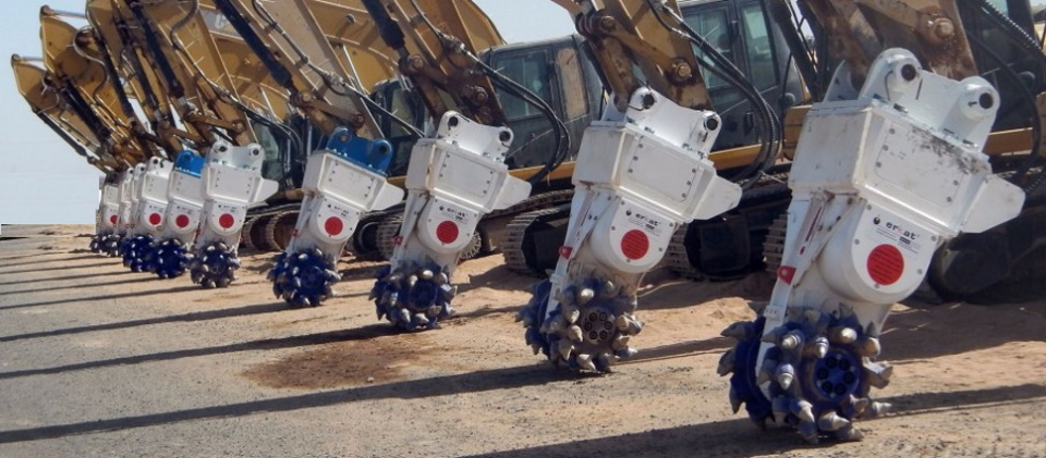 Ekskavatöre monte edilmiş frezeler ROCKWHEEL çeşitli modellerde sunulmaktadır. Yola monte kesiciler, hendek kesiciler, dikey modeller, zincir ve çapraz kesiciler vardır.