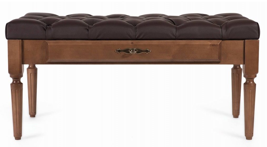 "Victoria-2" lamine suntadan yapılmıştır ve oturmaya yönelik üst kısım suni deri ile kaplanmıştır. Tasarım, yatak odası, oturma odası ve koridordaki iç mekana harika bir katkı olacaktır. Tezgahın altında çeşitli şeyleri saklamak için bir niş var. Ürün 80 kg yüke dayanabilir.