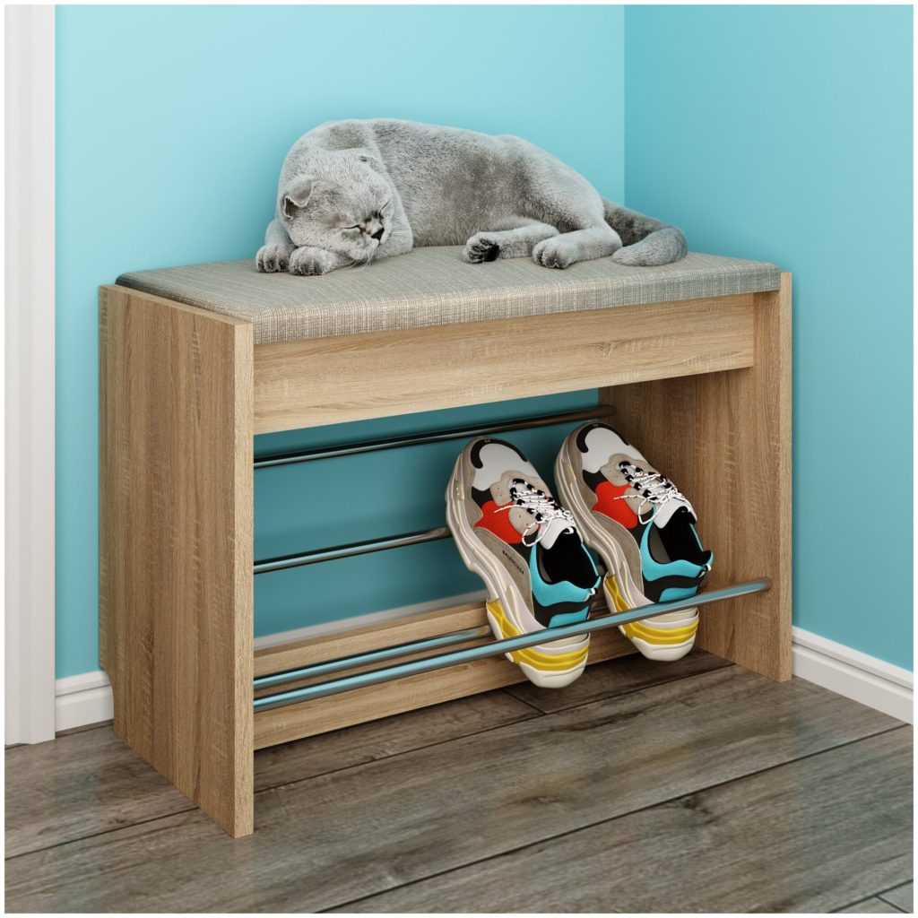 Keo Smart Sade CMT-1305, sadece koridor için değil, diğer odalar için de mükemmel bir çözüm olacak kompakt ve fonksiyonel bir tezgahtır. Açık rafların varlığı, üzerlerine 4 çift ayakkabı yerleştirmenize izin verir. Çerçevenin üretimi için üreticiler sunta kullanır, koltuk için dolgu maddesi olarak poliüretan köpük kullanılır ve döşemesi için paspas kullanılır. Bu modelin dayanabileceği maksimum ağırlık 100 kg'dır.