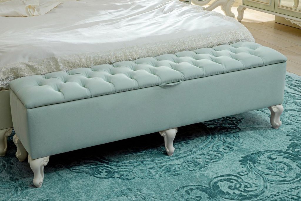 "Louise" modeli, hem yatağın devamı hem de ayrı bir dekor unsuru olarak yatak odasında harika görünecek. Gövde lamine suntadan yapılmıştır, kumaşla kaplanmış bir taşıma bağıyla kaplanmıştır. Kapak, braketler üzerinde yukarı kalkar ve altında üç saklama bölmesi bulunur. Ürünün gövdesi 6 oymalı ayak üzerine yerleştirilmiştir ve maksimum 100 kg'a kadar yüke dayanabilir.
