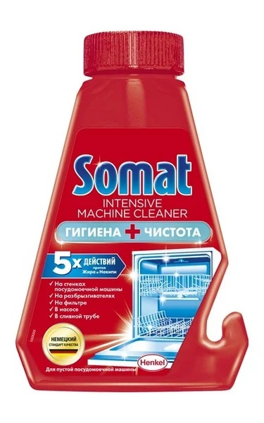 Alman Henkel şirketi kendini kanıtladı, bu yüzden yorumlar gereksiz. Alet, PMM'nin içini gres ve kireçten etkili bir şekilde temizler. Sıvı, sepetten kolayca asılması için bir kanca ile normal ambalaj içinde gelir.