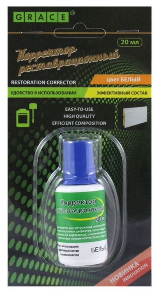 Bu düzeltici, zemin kaplamasında küçük girintiler bulunan küçük kusurları ortadan kaldırmak için tasarlanmıştır. Ahşap, lamine ve plastik yüzeyleri işleyebilir (mobilya, pencere ve kapılar dahil süpürgelikler ve arşitravlar dahil). Konteynerin hacmi 40 mililitre, markanın doğum yeri Rusya. Tavsiye edilen perakende satış fiyatı 150 ruble.