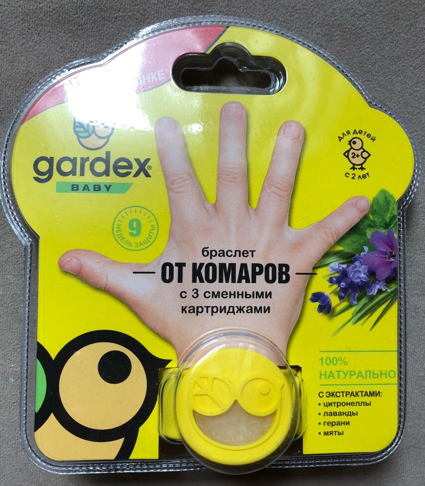 Çinli üreticiler tarafından çok uygun bir cihaz önerildi.Etki prensibi temassız bir iticidir. Bitki bileşenlerinin esansiyel yağlarını içeren doğal bileşim, çocukları iki yaşından itibaren korumak için kullanılmasına izin verir. Bilezikli set, her biri 3 hafta çalışan 3 adet çıkarılabilir kartuş içerir. Bebeğin küçük parçaları yutmasını önlemek için üzerine acı bir gıda katkısı sürülür.