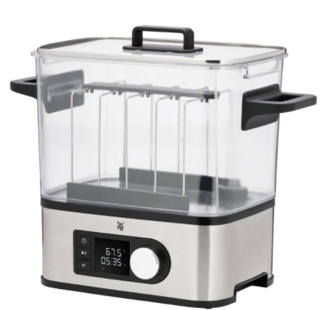 ProfiCook'un uygun fiyatlı sous vide'ı evde yemek pişirmek için tasarlanmıştır ve oldukça ekonomiktir ve sık sık kullanmanıza olanak tanır. Kompakt ve üretken cihaz 800 watt güce sahiptir. Cihazın gövdesi ergonomik bir tasarıma sahiptir ve mandal şeklinde güvenilir bir kilidi vardır.Model, 15 cm derinliğe ve 20 litreye kadar hacme sahip kaplara kurulabilir. Cihaz, suyun eşit şekilde ısınmasını sağlayan, dakikada 8 litre kapasiteli güçlü bir pompa ile donatılmıştır. Dijital göstergeli elektronik kontrol sistemi mevcuttur. Çalışma kolaylığı, 99 saate kadar bir zamanlayıcı ve 0.1 derecelik bir adımlı bir sıcaklık kontrolörü ile sağlanır. Su eksikliği durumunda otomatik kapanma, cihazı erken arızalardan korur. Yaklaşık fiyat - 11500 ruble.