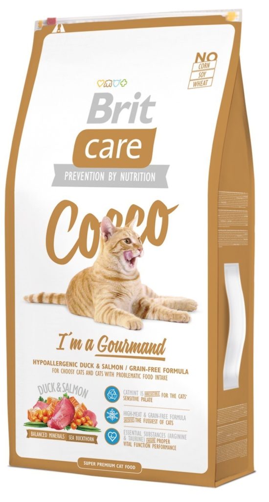Üretici, kolay sindirilebilir bileşenlerden oluşan besleyici ve doğal bir kedi maması üretmiştir.Bıyıklı ve kuyruklu tüketicilere tavuk, hindi, somon ve geyik eti tatları ile karışım sunulmaktadır. Brit Care Coccu, suyu alınmış tavuk, kuru elma ve mayanın yanı sıra, hayvanın büyümesi ve gelişmesi için gerekli vitamin, mineral ve diğer faydalı maddeleri içerir. Ürün, her kediyi cezbeden farklı bir aroması ile kedileri cezbeder.