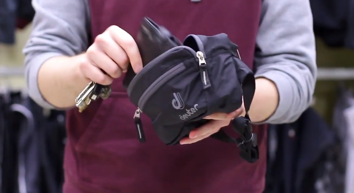 Çanta ayarlanabilir bir kayışla sabitlenir. Büyük bir plastik karabina, nesneyi gövdeye güvenli bir şekilde sabitler, tutturucunun nervürlerine basılarak kolayca açılır. Küçük bir cep, gerekli minimum şeylere uyacak - anahtarlar, plastik bir kart. Ortalama fiyat 1390 ruble.