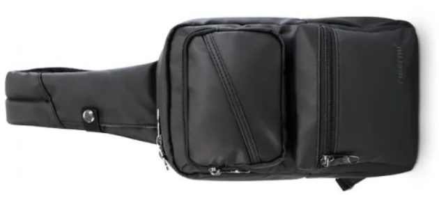 Üst kısımdaki tek cep fermuar ile kapanır. Derin ve hacimli bölme, bir akıllı telefona ve gerekli küçük şeylere kolayca sığar. Dış taraf, markalı bir yazı ile mat tekstilden yapılmıştır. Arka kısım, iyi nefes alan ve kasayı ovmayan örgü kumaştan yapılmıştır. Maliyet 690 ruble.