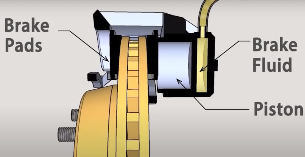 1. Sabit tasarımda, frenleme işlemi sırasında bir, iki veya daha fazla pistona hidrolik basınç uygulanır. Birbirlerinin karşısında yer alırlar, böylece pedleri diske bastıran bir gerilim yaratırlar. Pedala uygulanan kuvvete bağlı olarak, tam durma mesafesi değişir. Fren bırakıldığında devreye baskı uygulamayı keser ve pistonlar eski konumuna geri döner.