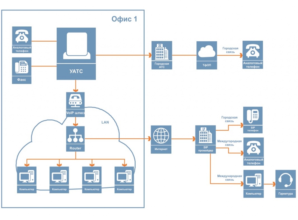 Ve ofislerin aynı şehirde veya farklı ülkelerde bulunması önemli değil. Bu çözüm, dahili hattaki aramaların maliyetini azaltmanıza olanak tanır - yalnızca İnternet bağlantısının ücretini ödemeniz gerekir. VoIP ağ geçitlerini kurduktan sonra, uzaktaki çalışanlar da kurumsal iletişimleri kullanabilecekler.