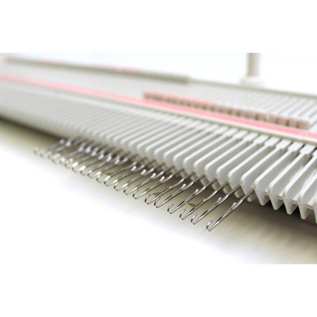 Knitmaster SK360, kalite ve güvenilirlik garantisi ile Japonya'dan kompakt, mekanik kontrollü bir örgü makinesidir. Model, sağlamlığı artırılmış plastikten yapılmış, 4,5 mm mesafeli 160 ünite için dayanıklı ve aşınmaya dayanıklı bir iğne mili ile donatılmıştır ve dördüncü makine kategorisine aittir. Orta kalınlıktaki iplikleri algılayabilir ve 18 noktalı bir desen tekrarı ile karakterize edilir. Cihazın göze çarpan bir özelliği, dişleri bastırmak ve özel paslanmaz çelik elemanlarla değiştirmek için metal bir rayın olmamasıdır. Ayrıca, orijinal özelliği, hafif ajur kumaşların üretimi için yerleşik zımba telidir. Kullanıcılar, sunulan sertifikalı ürünlerin, güç kaynağını bağlamadan herhangi bir tek hatlı ürünü örmek için evrensel bir cihaz olduğunu not eder.